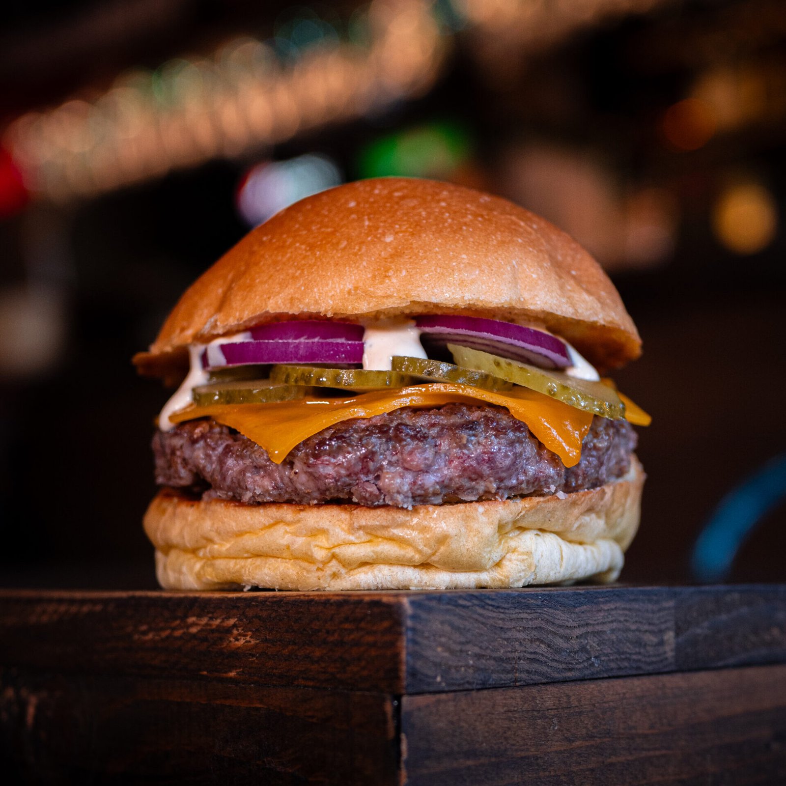 Pão brioche, 100% novilho (160gr), queijo cheddar,